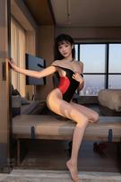 718 嫩模徐安安三亚旅拍私房浴室黑色连体衣配黑