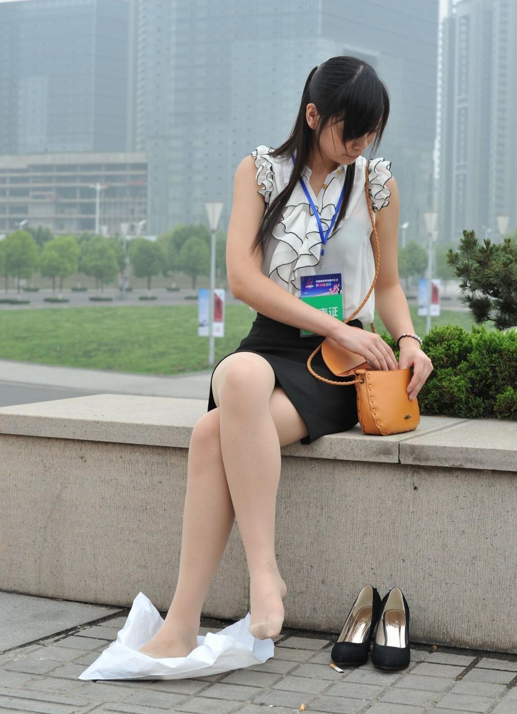 美女记者脱下高跟鞋小息【11P】