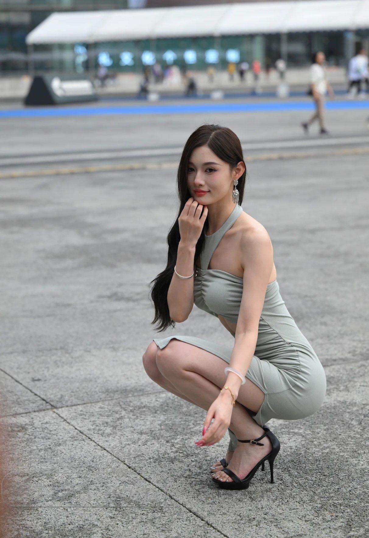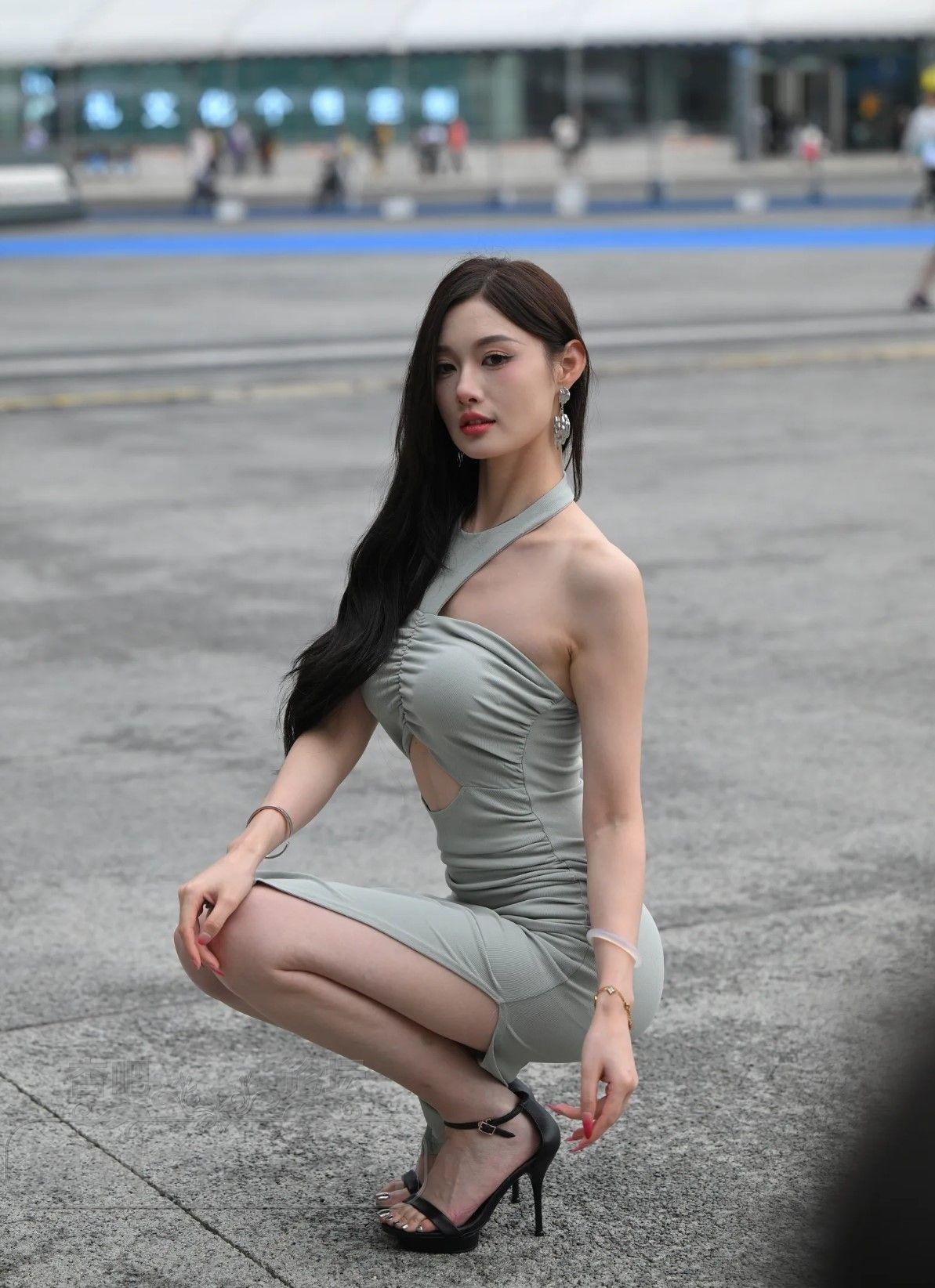 绿色修身裙,性感曲线裸露香肩的大美女【10P】