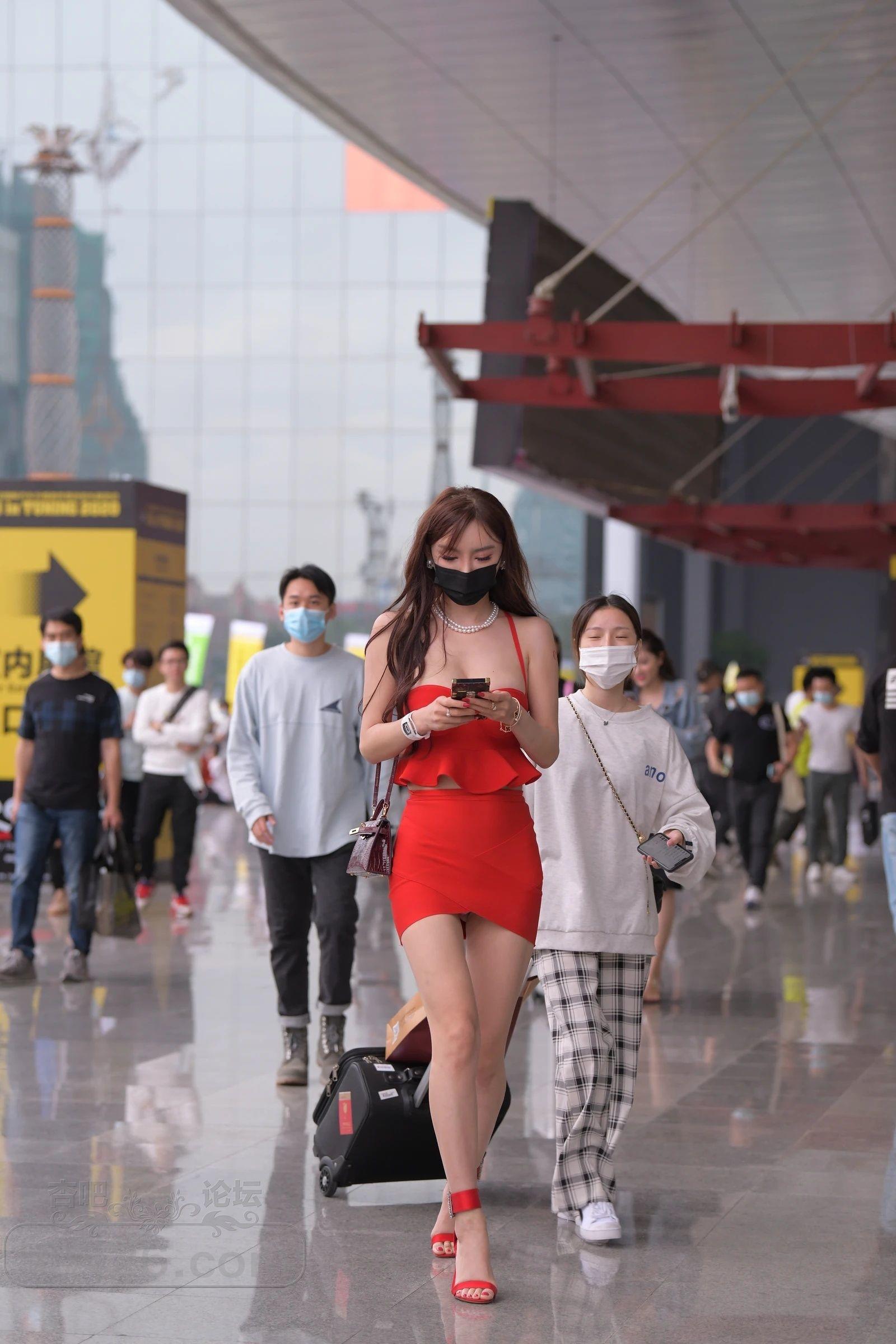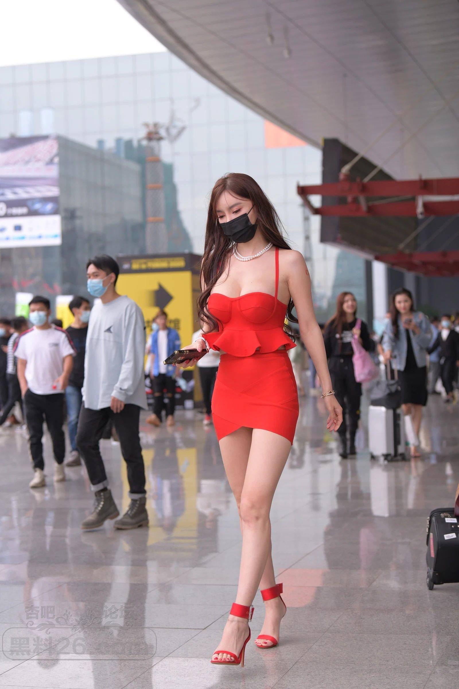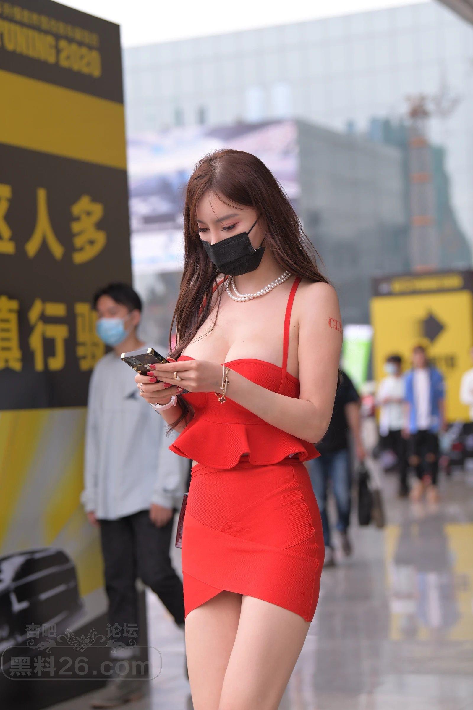 一身红衣短裙高跟鞋,靓妹颜值和火爆身材炸街了【17P】