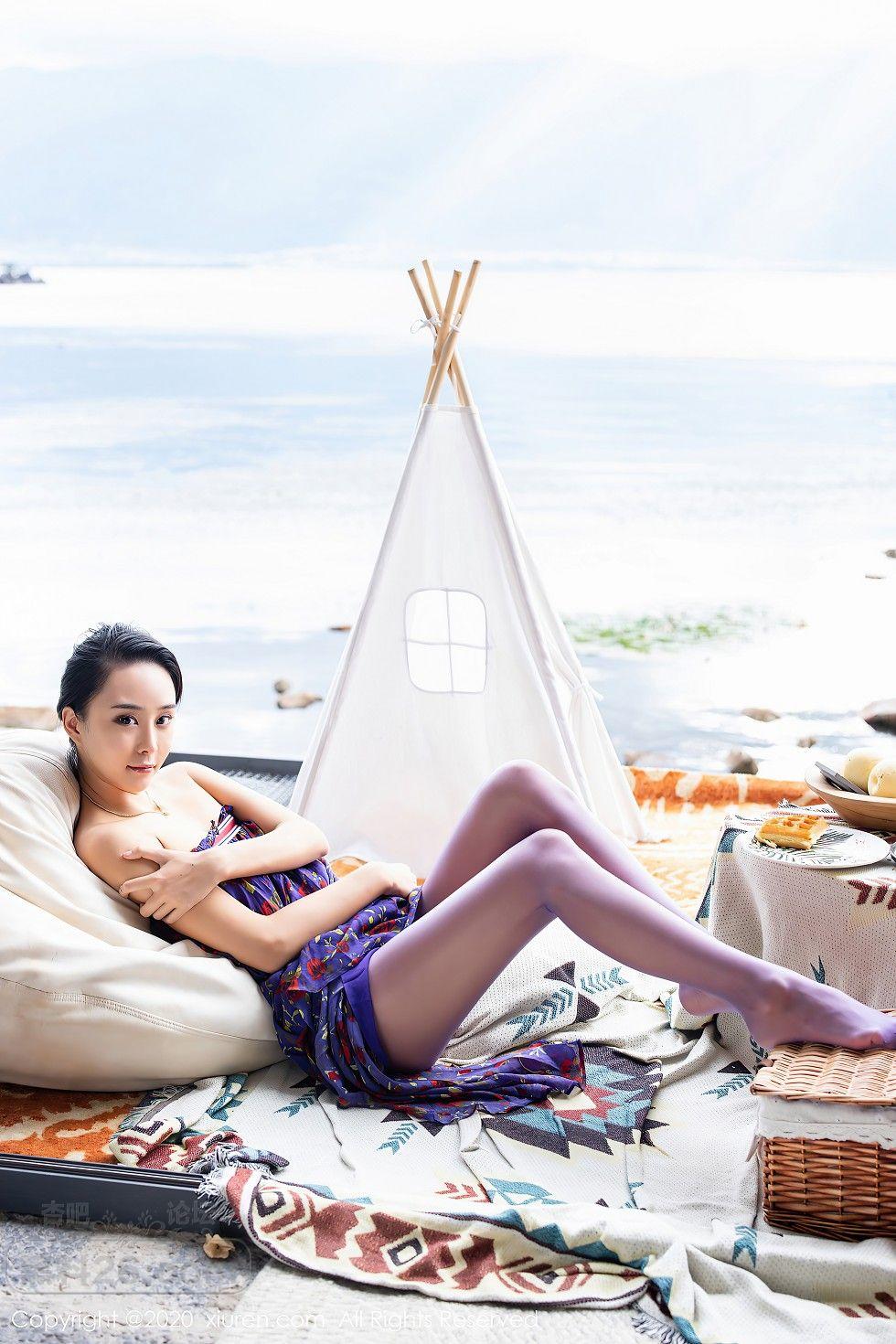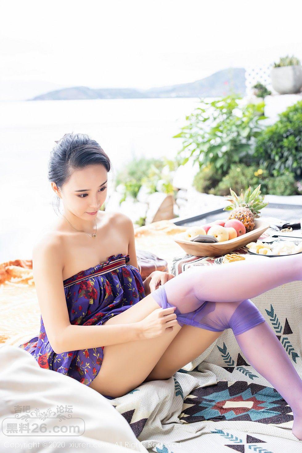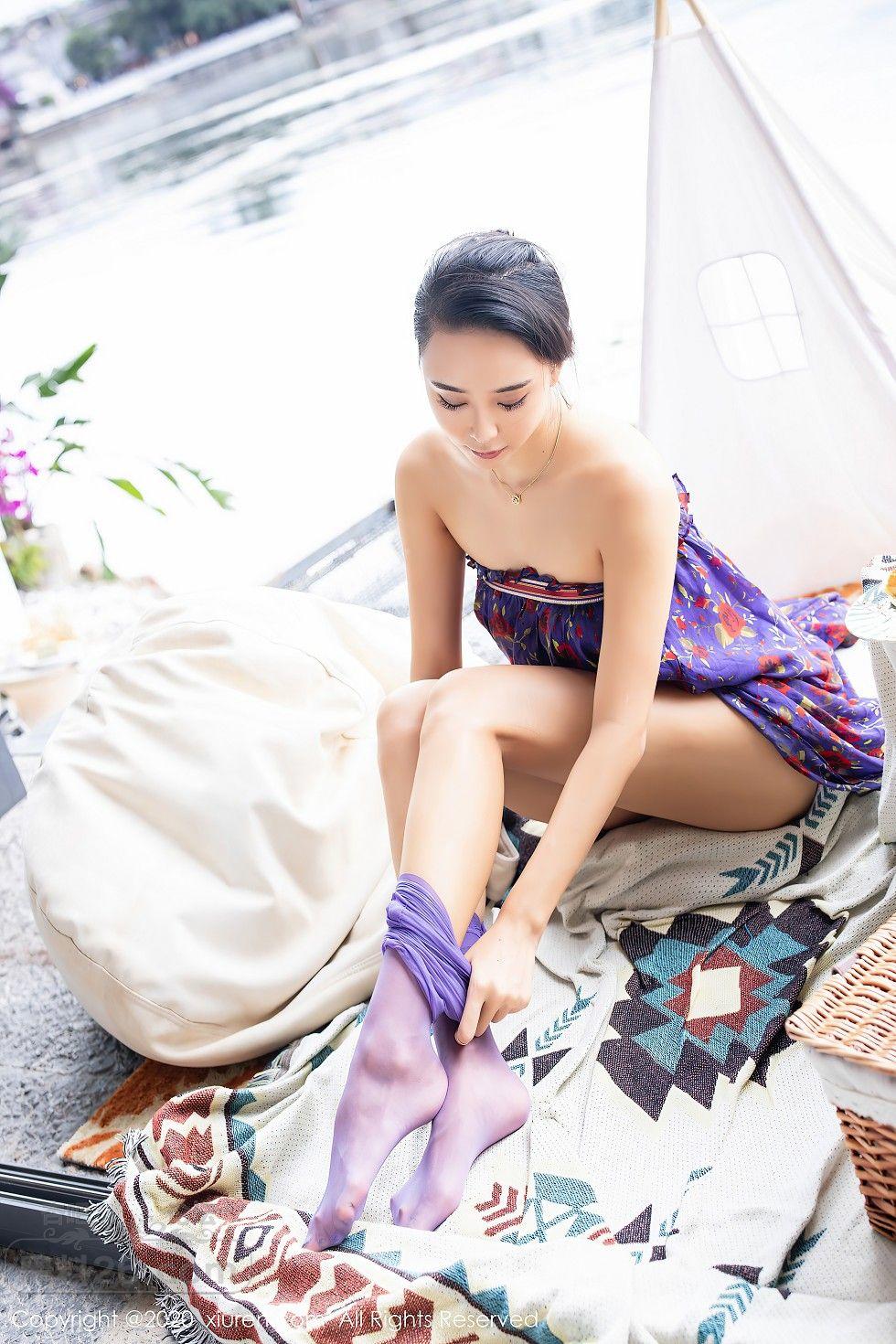 [美腿翘臀] 嫩模蓝夏Akasha户外紫色花衣配紫丝裤袜秀美腿玉足诱惑写真【40P】 |