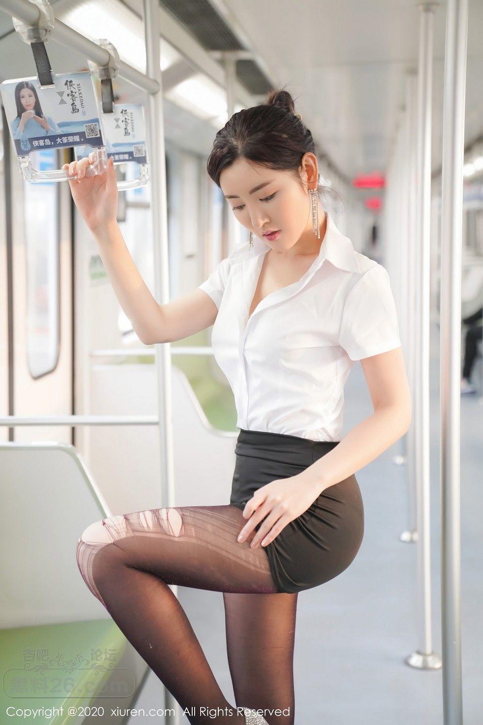 [美腿翘臀] 嫩模沈梦瑶地铁场景主题性感秘书制服黑短裙下黑丝美腿诱惑写真【50P】 |