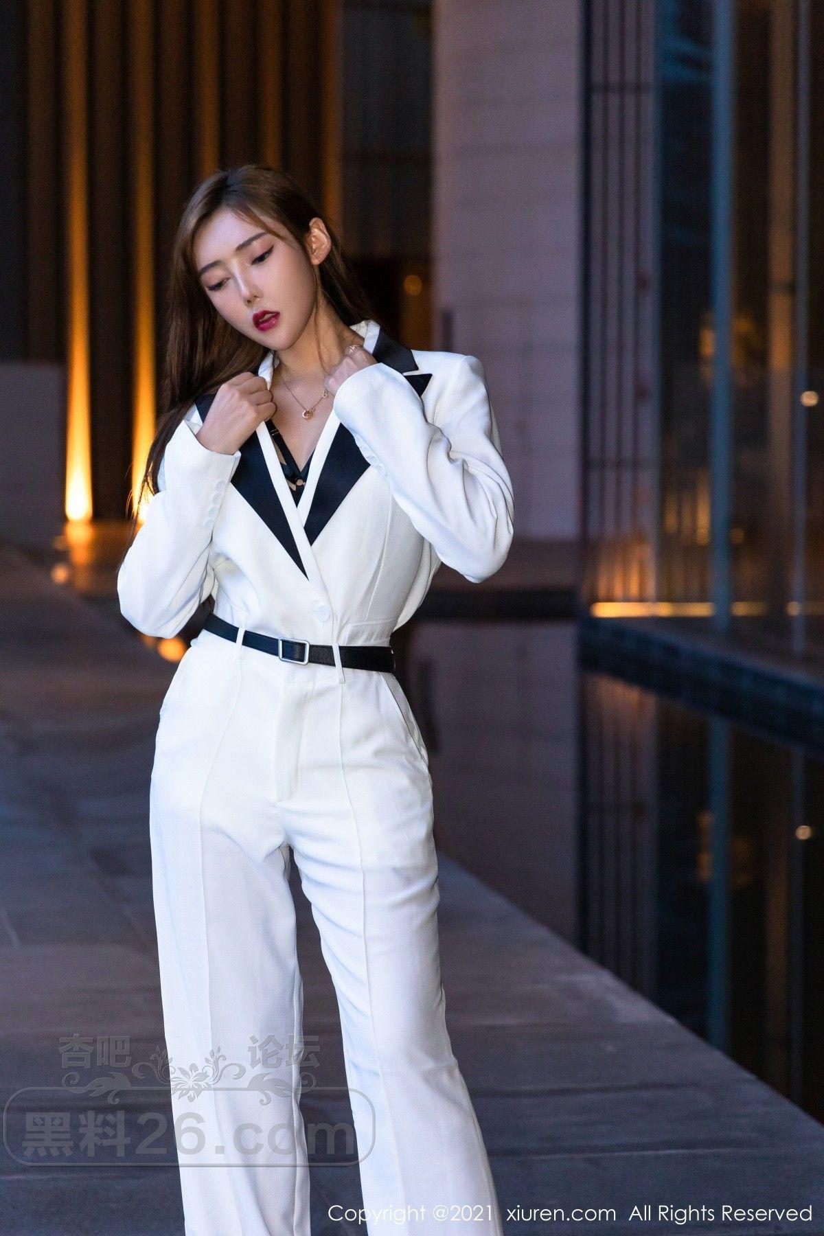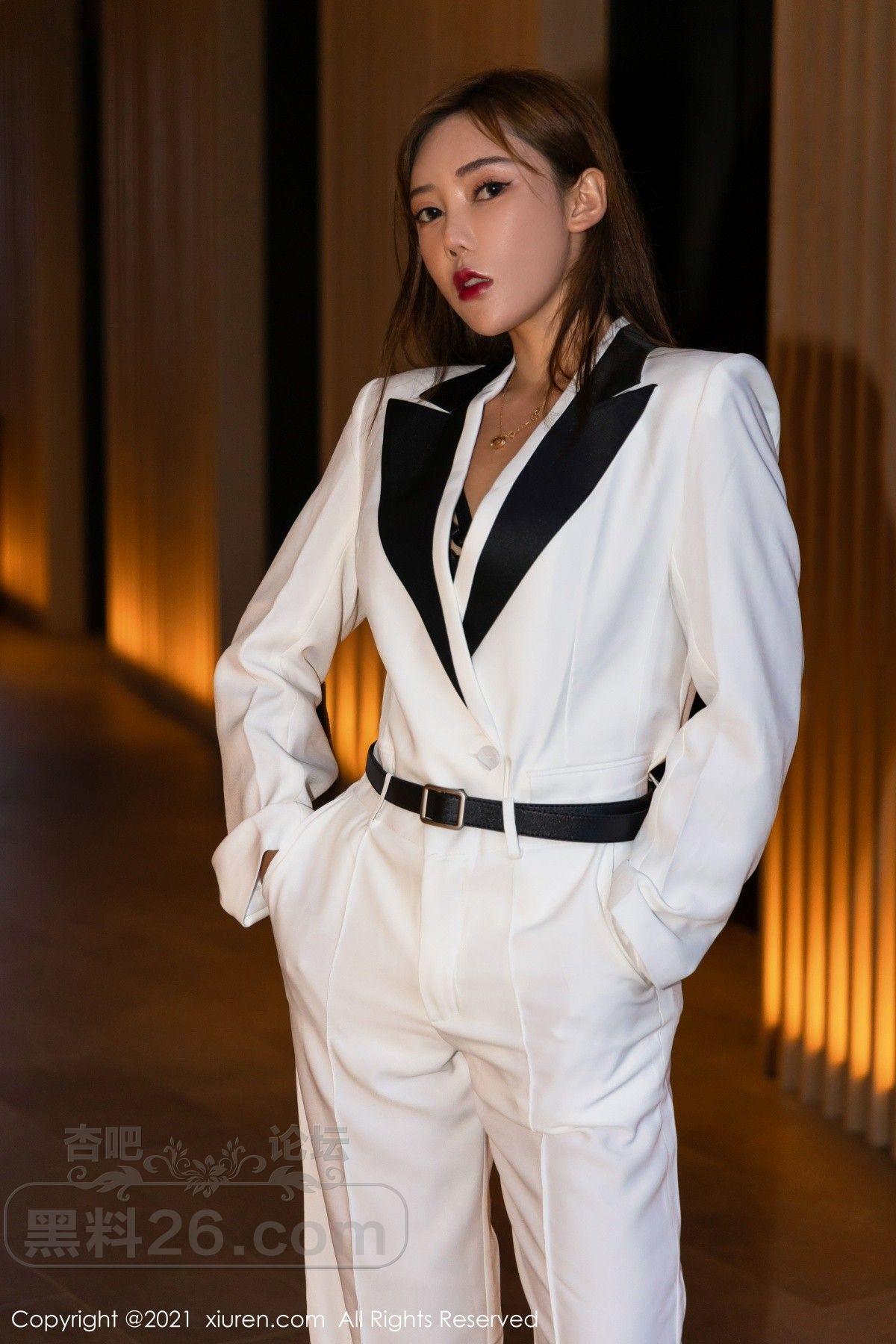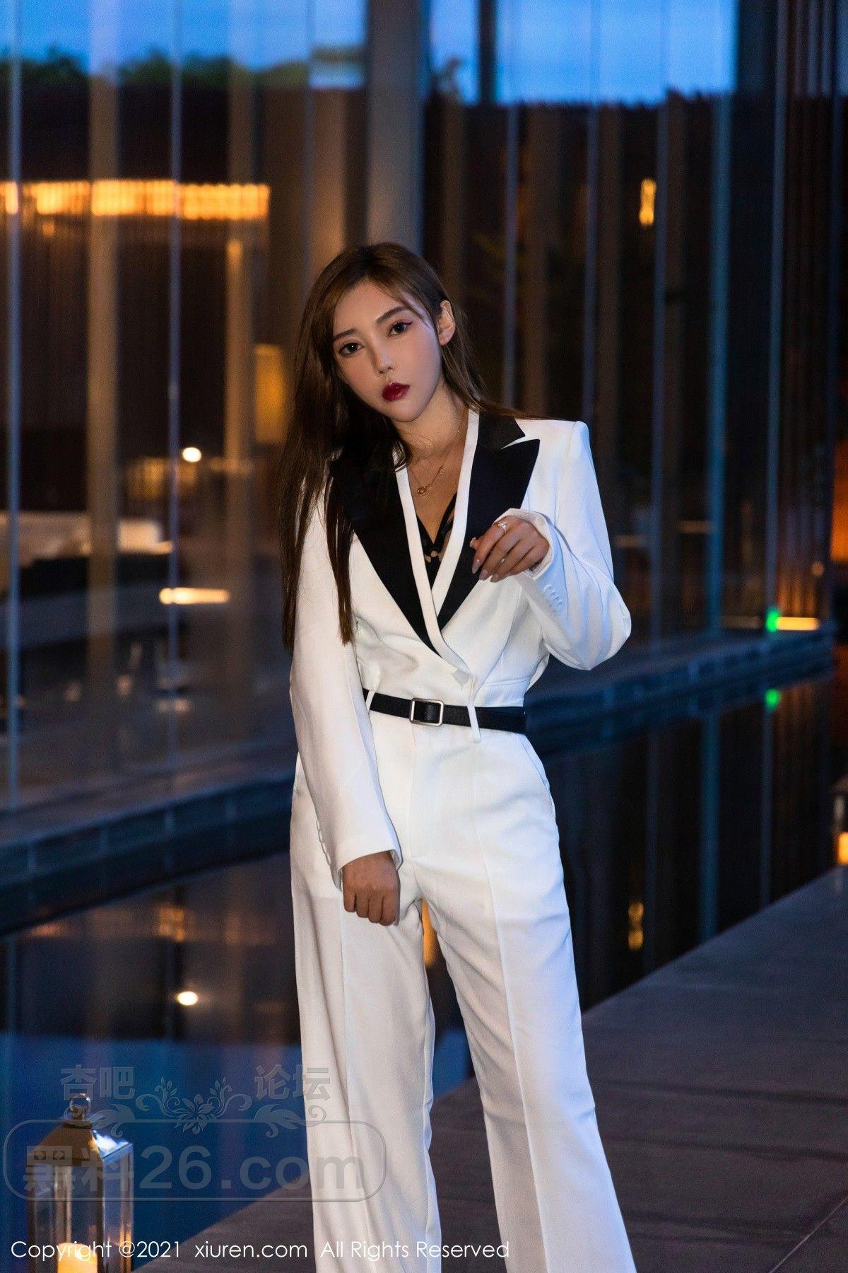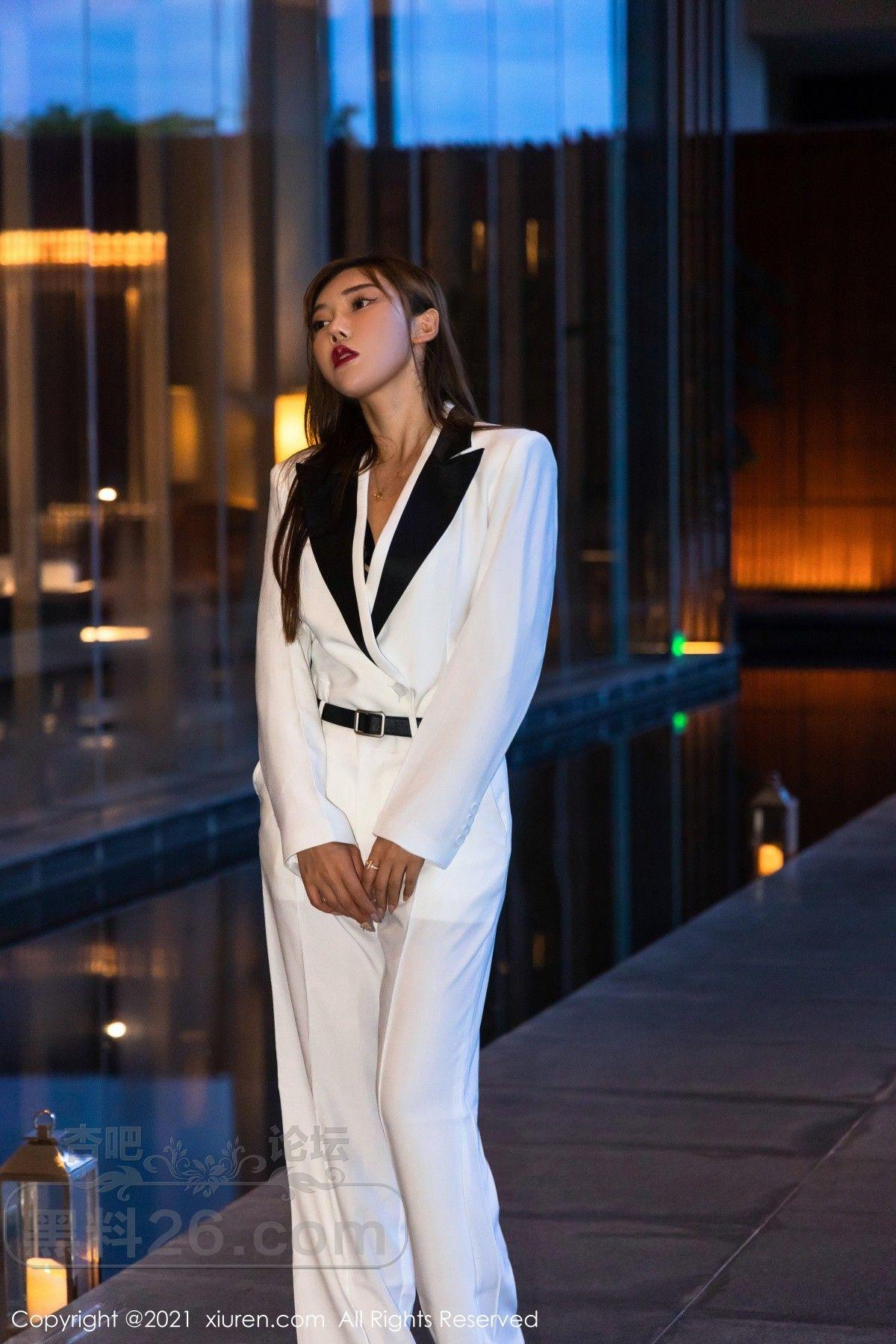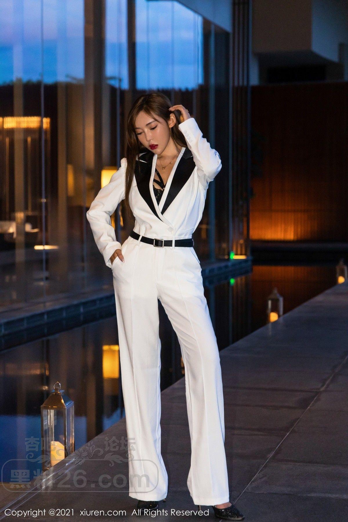 [美腿翘臀] 模特萌汉药baby三亚旅拍白色飒爽西装半脱露缕空内衣诱惑写真【50P】 |