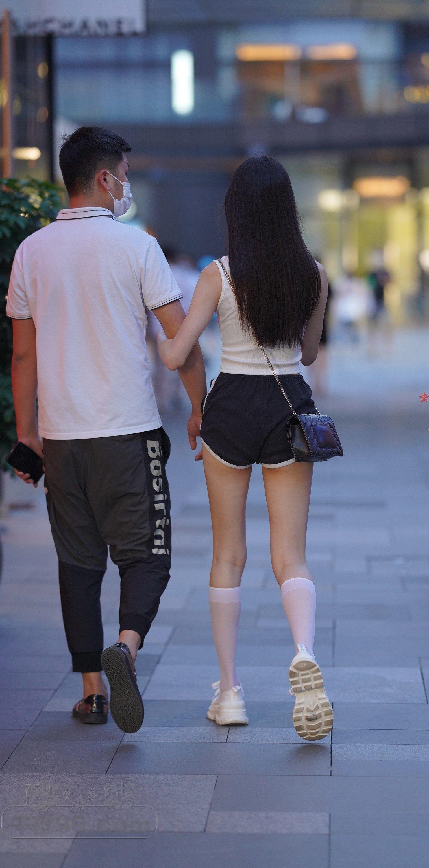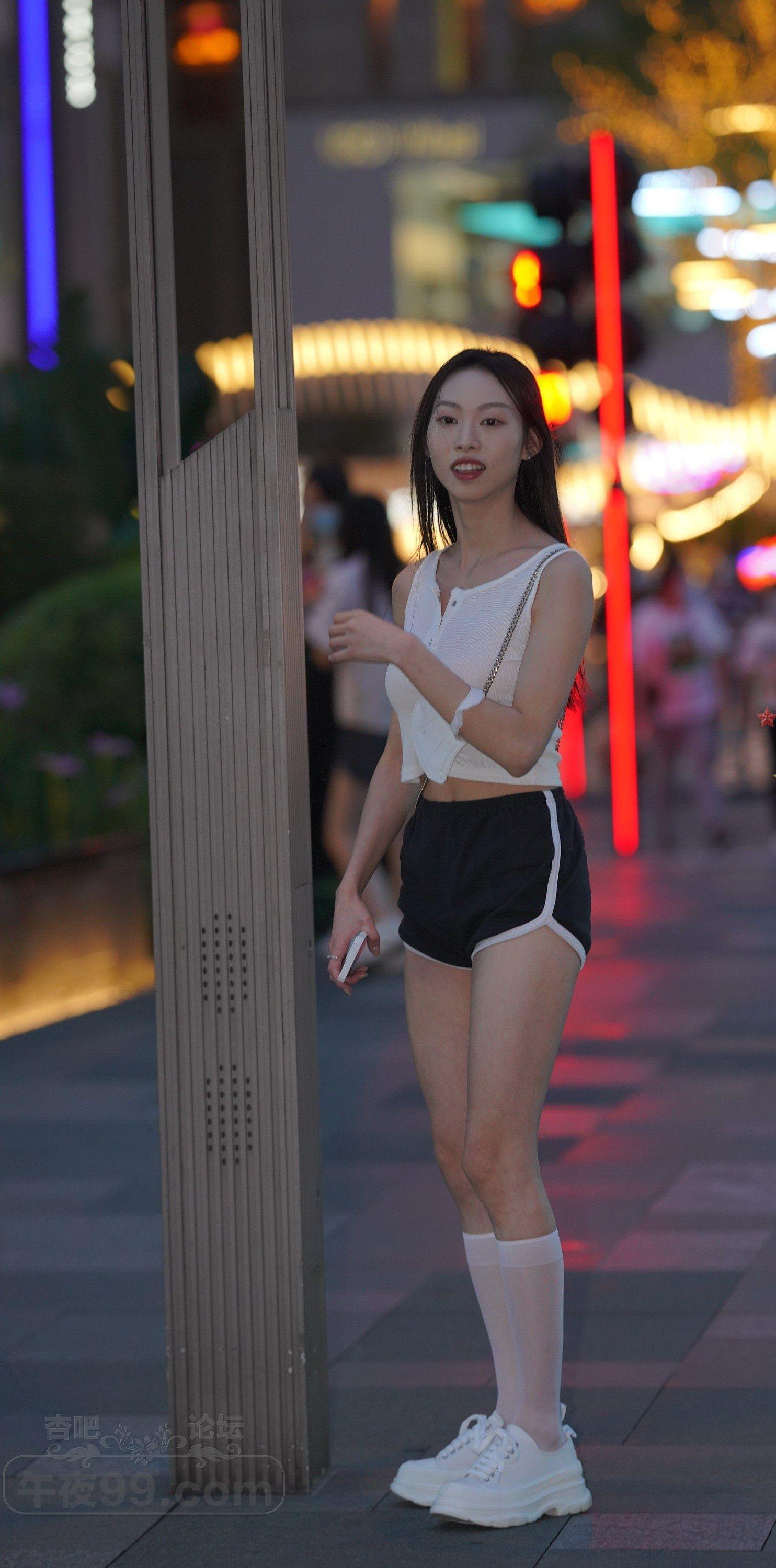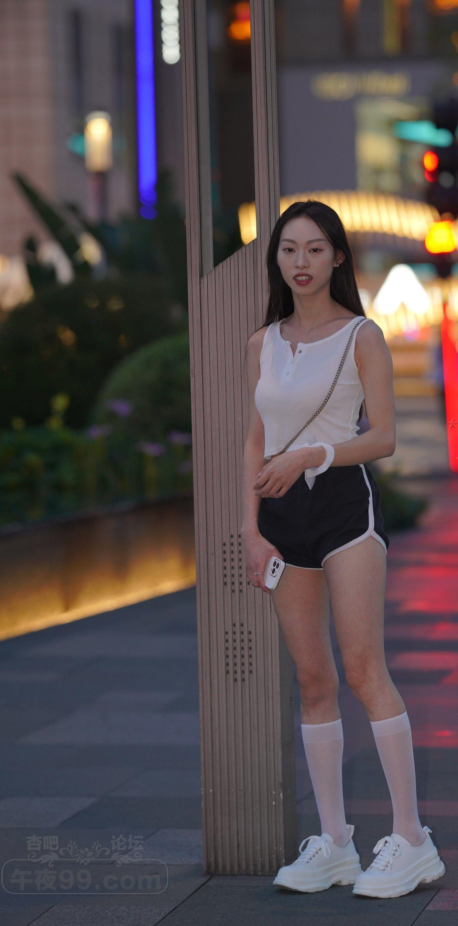 白色背心黑色运动短裤健康型美女夜晚和男友约会【10P】